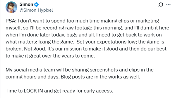 Paylaştığı yazılardan projeyi tekrar aldığını ve erken erişime hazırlandığını söylüyor.